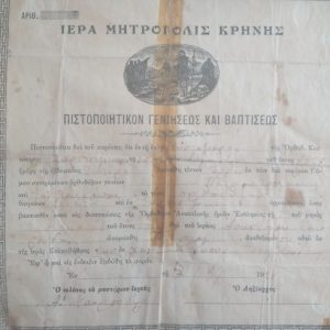 Πιστοποιητικό Γεννήσεως και Βαφτίσεως, 1921