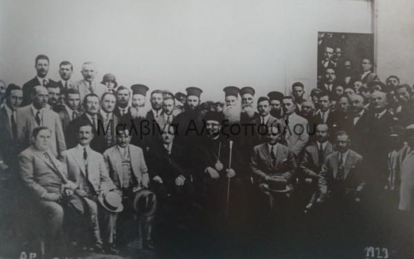 Αναμνηστική φωτογραφία- ντοκουμέντο, Ιούλιος 1929, με τον τότε Μητροπολίτη Κορίνθου Δαμασκηνό και τον τότε Δήμαρχο Κορίνθου Γεώργιο Ηλιόπουλο, κατά την ημέρα της ανακήρυξης της πόλης σε δήμο. Πίσω από τον Ηλιόπουλο διακρίνεται και ο μετέπειτα Δήμαρχος Κωνσταντίνος Τσέλιος.